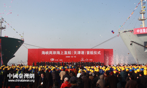 15日上午9時(shí)30分,海峽兩岸海上直航首航儀式在天津港東疆保稅港區(qū)隆重舉行。中國(guó)臺(tái)灣網(wǎng) 李徽攝