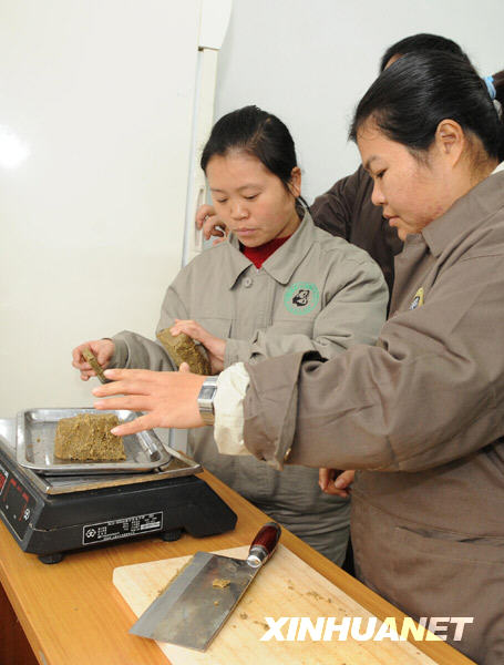 下午3點(diǎn)多,團(tuán)團(tuán)圓圓管理室。游雪音熟練地從冰箱里取出兩片“熊貓窩窩頭”,在天平上一稱,不多不少正好350克,這是大熊貓一餐進(jìn)食窩窩頭的定量。12月12日來(lái)到碧峰峽學(xué)習(xí)飼養(yǎng)技術(shù)后,這個(gè)小個(gè)子姑娘特別努力!皥F(tuán)團(tuán)”“圓圓”每天進(jìn)食6次,每次竹子、窩窩頭、蘋果和胡蘿卜的量不一樣,細(xì)心的小游早就把這些數(shù)字謹(jǐn)記在心。