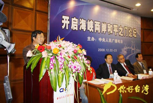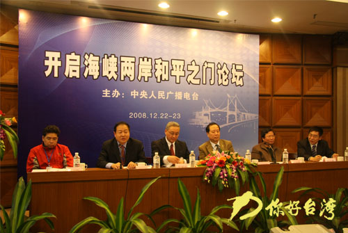 “開啟海峽兩岸和平之門”論壇是在改革開放走過30年、兩岸關系迎來“三通”新時代的大背景下召開的。中央人民廣播電臺副臺長趙鐵騎在開幕式上致詞時表示,和平發(fā)展已成為兩岸關系的主旋律,是人心所向、大勢所趨;兩岸從隔絕走到接觸、從敵對走向協(xié)商,在互通中彼此的了解正在增多,理解正在加深,因而感情也將更加密切,利益更加融合;隨著兩岸直接“三通”的基本實現,海峽兩岸將迎來大交流、大合作、大發(fā)展的新階段。