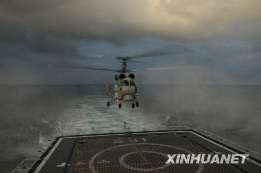 12月28日夜,中國赴亞丁灣、索馬里海域護航編隊組織夜間直升機行進間著艦訓練。新華社發(fā)