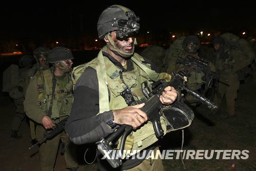 1月3日晚,以色列軍人向加沙地帶前進(jìn)。來自以色列和巴勒斯坦方面的消息證實(shí),以軍當(dāng)?shù)貢r間1月3日晚間8時30分左右展開了對加沙地帶的地面攻勢。 新華社/路透