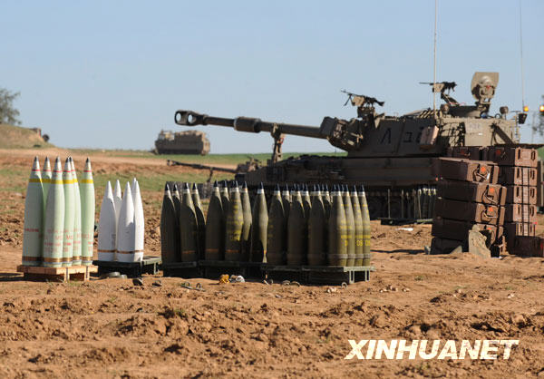 1月6日,一自行火炮停在加沙地帶南部邊境。新華社記者 殷博古攝