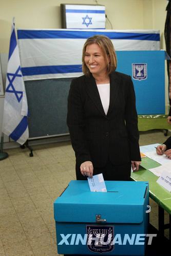 2月10日,以色列外長(zhǎng)、前進(jìn)黨主席利夫尼在特拉維夫的一個(gè)投票站投票。
