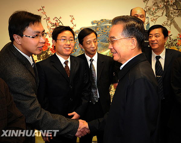 這是2月10日,溫家寶與企業(yè)界代表交談。新華社記者 劉建生 攝