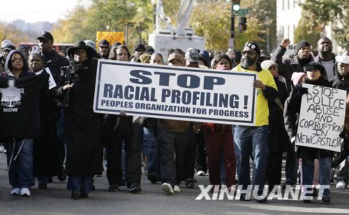 2月26日,中國(guó)國(guó)務(wù)院新聞辦公室發(fā)表《2008年美國(guó)的人權(quán)紀(jì)錄》,以回應(yīng)美國(guó)國(guó)務(wù)院25日發(fā)表的《2008年國(guó)別人權(quán)報(bào)告》對(duì)包括中國(guó)在內(nèi)的世界190多個(gè)國(guó)家和地區(qū)的人權(quán)狀況的指責(zé)。這是2007年11月16日,美國(guó)黑人民眾在首都華盛頓街頭參加反對(duì)種族歧視的游行。在美國(guó),種族歧視滲透到社會(huì)生活的各個(gè)方面。新華社發(fā)