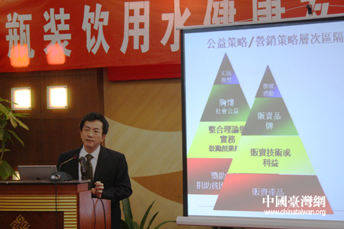 康師傅控股集團(tuán)總裁室副總經(jīng)理錢為家在“瓶裝飲用水健康發(fā)展戰(zhàn)略研討會(huì)”上介紹本公司開(kāi)展水公益事業(yè)的情況。