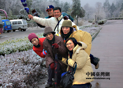 中國臺灣網(wǎng)2月28日消息 昨天,來湖南參訪的近40位臺南市地方民意代表、里長走進清溪潺潺、奇峰聳立的張家界旅游風景區(qū),游覽黃龍洞和武陵源風景區(qū),26日晚上,正值雨季的張家界適逢一場較大的雨雪,昨天武陵源內(nèi)海拔稍高的地方出現(xiàn)了銀裝素裹的霧凇奇觀,引起來自寶島的客人驚嘆。