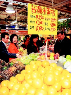 兩岸直接“三通”后航運(yùn)時(shí)間縮短,運(yùn)輸成本大降,上海超市趁勢(shì)推出“臺(tái)灣水果節(jié)”促銷葡萄柚、楊桃、釋迦、番石榴等臺(tái)灣水果。圖片來源:臺(tái)灣《聯(lián)合報(bào)》