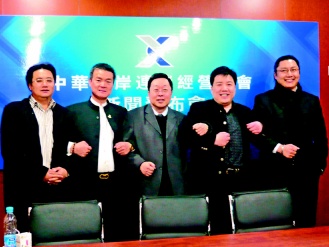 由臺(tái)灣85度C上海區(qū)總經(jīng)理孫武良(左起)、永和豆?jié){董事長(zhǎng)林炳生、上海臺(tái)灣連鎖加盟產(chǎn)業(yè)商務(wù)中心董事長(zhǎng)王國(guó)安、大陸巴貝拉餐廳董事長(zhǎng)陳韋興、和成衛(wèi)浴董事長(zhǎng)邱士楷等人共同發(fā)起的“ 中華兩岸連鎖經(jīng)營(yíng)協(xié)會(huì)”,預(yù)定在4月2日成立。臺(tái)灣《聯(lián)合報(bào)》圖