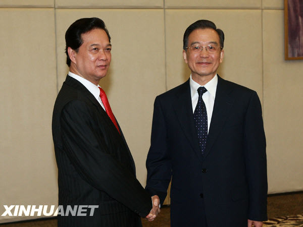溫家寶在會見阮晉勇時說,明年是中越建交60周年,雙方?jīng)Q定舉辦“中越友好年”活動。面對國際金融危機的沖擊,加強中越合作具有特殊重要意義。中方愿與越方保持高層交往,鞏固政治互信;共同落實好雙方達成的共識,加強經(jīng)貿(mào)合作的規(guī)劃,努力保持雙邊貿(mào)易增長。溫家寶指出,兩國去年底如期完成陸地邊界勘界立碑工作,為實現(xiàn)邊境地區(qū)長治久安和共同發(fā)展奠定了基礎。南海問題是中越之間最后一個懸而未決的歷史遺留問題。雙方要登高望遠,從大局出發(fā),積極維護南海穩(wěn)定,推進互利合作,爭取南海共同開發(fā)邁出積極步伐。