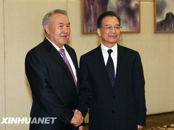 溫家寶在會見納扎爾巴耶夫時表示,中哈戰(zhàn)略伙伴關系快速發(fā)展,務實合作成果豐碩。面對國際金融危機的嚴重沖擊,兩國充分發(fā)揮各自優(yōu)勢,加強合作,給雙方帶來了實實在在的利益。雙方要重點做好四方面工作:一是采取積極措施,保持雙邊貿(mào)易增長勢頭;二是加緊落實已達成的協(xié)議,重點推進能源、資源領域的合作;三是加強金融和投資合作,確保大項目順利實施;四是推動基礎設施等非資源領域合作,使兩國貿(mào)易關系更加富有活力。