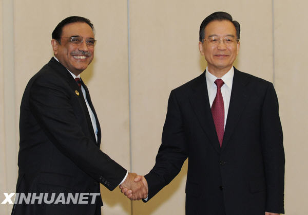 4月17日,國務院總理溫家寶在海南三亞會見巴基斯坦總統(tǒng)扎爾達里。新華社記者 黃敬文 攝