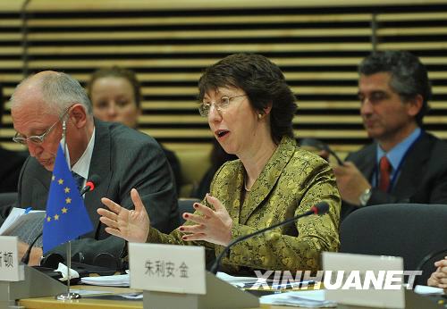 5月7日,在位于比利時首都布魯塞爾的歐盟總部,歐委會貿(mào)易委員阿什頓在當天開幕的第二次中歐經(jīng)貿(mào)高層對話會上發(fā)言。新華社記者武巍攝