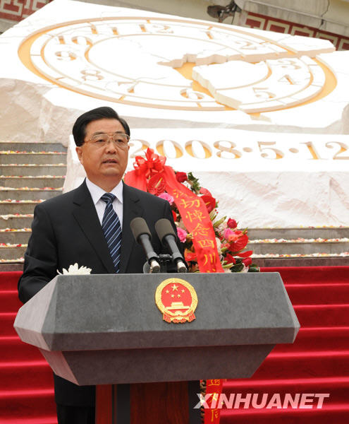 胡錦濤在出席紀(jì)念四川汶川特大地震一周年活動時的講話