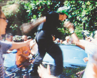 當(dāng)時綠營民眾跳上張銘清座車車頂