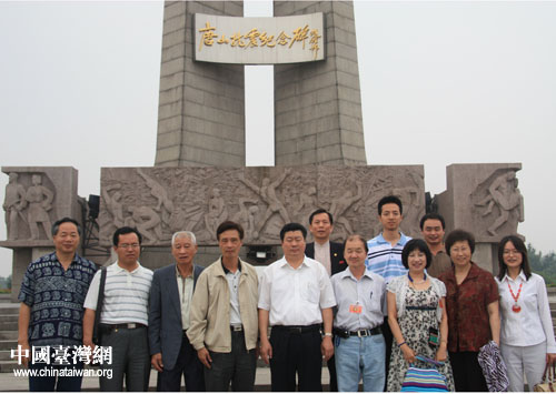 參加“第四屆海峽兩岸企業(yè)發(fā)展與合作論壇”的嘉賓和代表一行今天參觀了唐山抗震紀(jì)念館、南湖生態(tài)城等著名景點和建筑。圖為部分嘉賓在唐山抗震紀(jì)念碑前合影留念。(中國臺灣網(wǎng) 肖燕 攝)