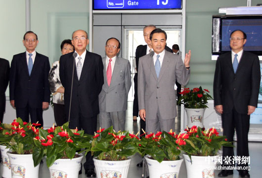 7月10日下午,中共中央臺辦主任王毅到長沙黃花國際機場迎接中國國民黨主席吳伯雄一行。(中國臺灣網(wǎng) 鐘寶華 攝)