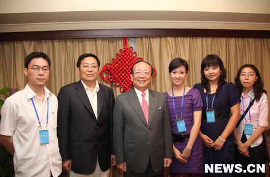 中國國民黨副主席蔣孝嚴(yán)與新華社記者合影 新華網(wǎng) 邢廣利 攝