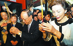 蔣孝嚴(yán)夫婦在蔣氏故居本堂進(jìn)香祭祖