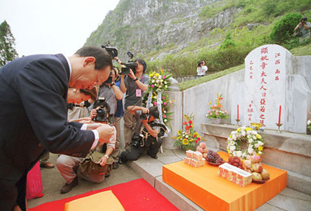 蔣孝嚴(yán)赴大陸祭祖 在母親墳前上香