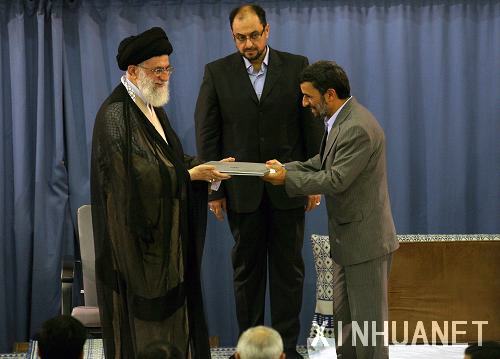 伊朗最高領(lǐng)袖哈梅內(nèi)伊3日正式批準(zhǔn)了艾哈邁迪—內(nèi)賈德為伊朗第十屆總統(tǒng),內(nèi)賈德的第二任總統(tǒng)任期從當(dāng)天正式開始。