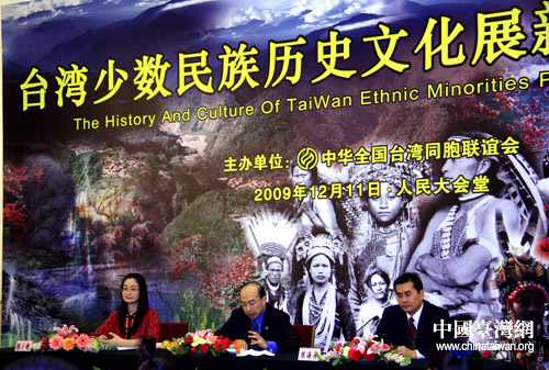 臺(tái)灣少數(shù)民族歷史文化展將于2009年12月21日——2010年1月6日在北京舉行,圖為11日該展覽新聞發(fā)布會(huì)在北京人民大會(huì)堂舉行(中國(guó)臺(tái)灣網(wǎng) 李徽 攝)