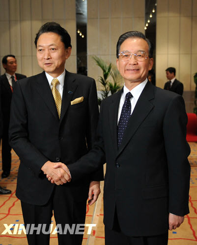 12月17日,中國國務(wù)院總理溫家寶在哥本哈根會見日本首相鳩山由紀夫。新華社記者劉建生攝