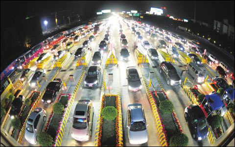 南寧埌東收費站出現(xiàn)車流返城高峰(來源:南寧晚報)