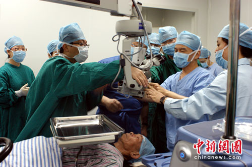 圖為醫(yī)生為白內(nèi)障患者做手術(shù)(項(xiàng)盛/攝)