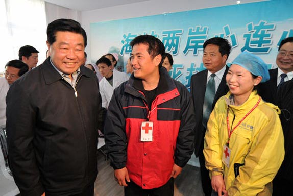 賈慶林看望臺灣醫(yī)療救援隊(duì)成員代表胡錦濤總書記向臺灣醫(yī)療救援隊(duì)全體成員表示誠摯感謝
