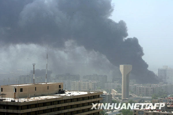 8月19日,滾滾濃煙從伊拉克首都巴格達市中心升起。新華社/法新