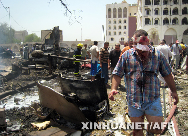 8月19日,一名受傷男子從位于伊拉克首都巴格達市中心的一爆炸現(xiàn)場離開。 新華社/法新