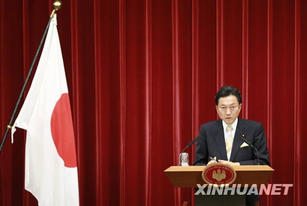 9月16日,新當選的日本首相鳩山由紀夫在東京首相官邸舉行組閣后的首次記者會。新華社記者任正來攝