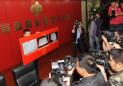 中國福彩3.599億元巨獎得主現(xiàn)身兌獎 新華社記者趙鵬攝