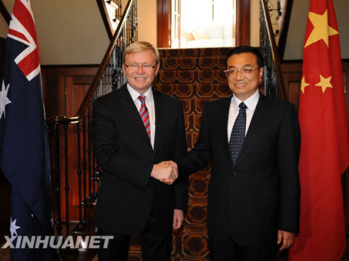 10月30日,中國國務(wù)院副總理李克強在澳大利亞首都堪培拉會見澳大利亞總理陸克文。新華社記者劉建生攝