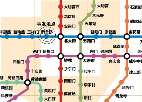 事發(fā)地點(diǎn)位于西安地鐵一號線灑金橋站