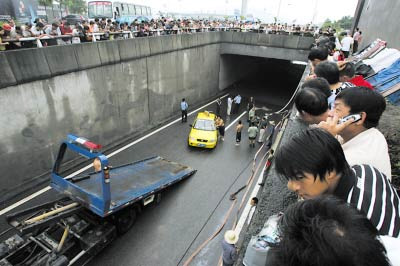 “出租車淹死乘客”一事經(jīng)報道后,一直是市民討論的熱點。該下穿道在2007年就曾發(fā)生嚴(yán)重積水事件,問題為何兩年多未解決?下穿道是否存在設(shè)計缺陷?昨日,北部新區(qū)管委會與該下穿道的設(shè)計、施工和管理公司以及交警等多個部門,對市民關(guān)心的問題作了回答。