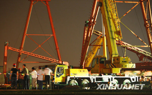 新華網(wǎng)上海8月19日電(記者劉丹、賈遠(yuǎn)琨)19日17時(shí)58分,位于上海市嘉定區(qū)京滬高鐵六標(biāo)十工區(qū)的一個(gè)10噸的龍門塔吊倒塌,造成4名工人死亡,2名工人受傷。