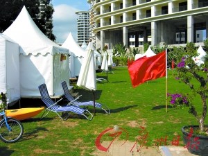 高端酒店咬定高價不放松,中低端酒店在亦步亦趨的同時還不忘廣開財源。在三亞灣,有酒店就推出體驗式帳篷,期待招徠客源。記者在三亞度假村酒店看到,這家酒店的草坪上,15頂白色帳篷已經(jīng)搭起,里面不僅配備了床,水電也一應(yīng)俱全,每個帳篷內(nèi)還配備了環(huán)保廁所。
