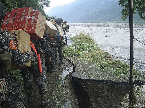 據(jù)臺灣媒體報道,高雄縣六龜鄉(xiāng)對外道路遭洪水沖毀,仰賴直升機空投物資及輸運災(zāi)民。由于直升機載客人數(shù)有限,居民攜家?guī)Ь鞊尦梢粓F。當(dāng)?shù)貜R宇比丘、比丘尼也加入戰(zhàn)局,指責(zé)平時幫助當(dāng)?shù)厝,危急時刻竟遭背棄。