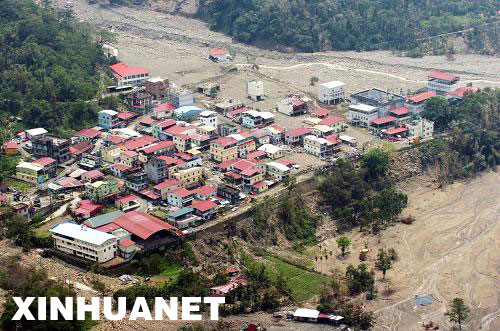 8月22日航拍的臺灣高雄縣那瑪夏鄉(xiāng)民生村受災情況。