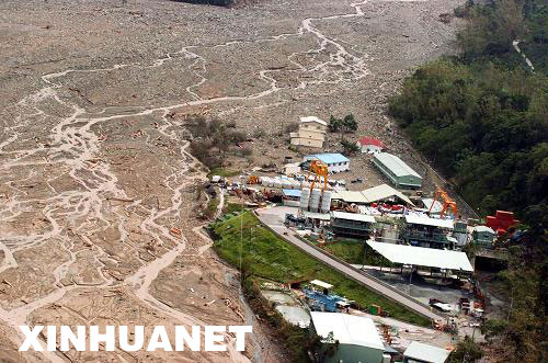臺風“莫拉克”重創(chuàng)南臺灣,山川變色,昔日迷人的峻嶺峭壁、溪流瀑布瞬間就成為駭人的“魔鬼”。位于高雄縣北部的那瑪夏鄉(xiāng)大量房屋與農(nóng)田被泥石流沖毀,對外交通阻斷。新華社發(fā)