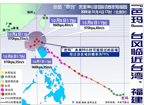 臺灣氣象局表示,受臺風(fēng)及外圍環(huán)流影響,臺灣北部、東半部地區(qū)和恒春半島6日仍將有局部性暴雨,中南部山區(qū)也有局部性大雨或暴雨。盡管“芭瑪”登陸臺灣的可能性較低,但臺灣當(dāng)局和各縣市政府不敢大意,高度戒備,目前正忙于進(jìn)行各種抗災(zāi)準(zhǔn)備。