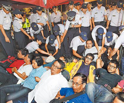 苗栗大埔自救會連日來在臺當(dāng)局“行政院”前抗議,臺北市警方昨凌晨強(qiáng)制驅(qū)離,有2名民眾送醫(yī)觀察。(圖片來自臺媒)