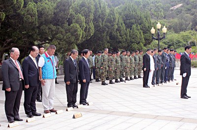 八二三炮戰(zhàn)55周年,馬英九(前右)率同臺軍高層將領(lǐng) 、金門各界首長追思陣亡將士。臺灣“中央社”