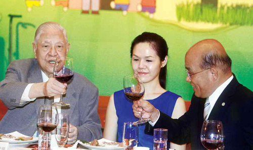 餐會預(yù)計6點半才開始,有早到習(xí)慣的李登輝,在5點40分就到了。無法坐下來晚餐的前民進(jìn)黨主席蔡英文,在5點45分左右先來致意。在時間允許下,李蔡兩人就在貴賓室里聊了快半個小時,一直到6點10分“臺聯(lián)黨”主席黃昆輝來了,才結(jié)束密談。