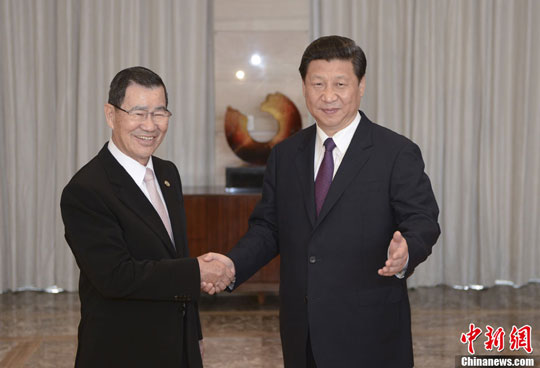 蕭萬長于10月7日至8日率團(tuán)赴印尼巴厘島參加2013年APEC會(huì)議,中共中央總書記習(xí)近平6日上午會(huì)見了臺灣兩岸共同市場基金會(huì)榮譽(yù)董事長蕭萬長一行。