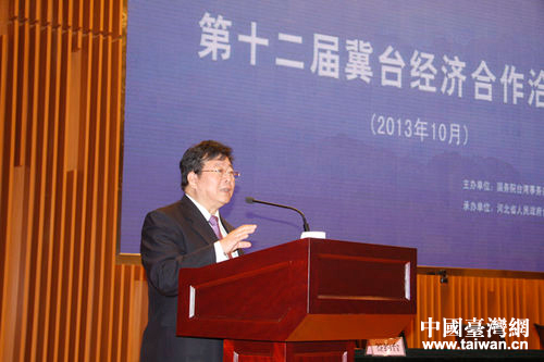 孫亞夫在第十二屆冀臺(tái)經(jīng)濟(jì)合作洽談會(huì)上致辭(中國(guó)臺(tái)灣網(wǎng) 雍紫薇 攝)