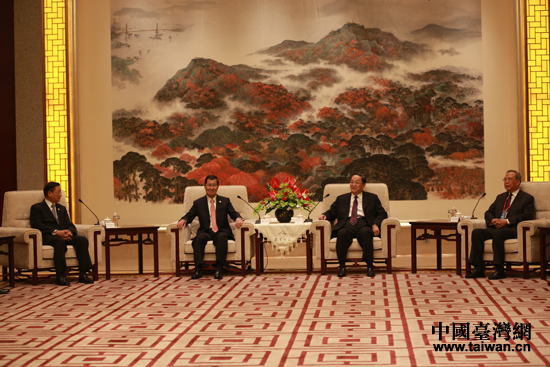 中共中央政治局常委、全國政協(xié)主席俞正聲會見2013兩岸企業(yè)家紫金山峰會嘉賓代表。(中國臺灣網(wǎng) 王偉 攝)