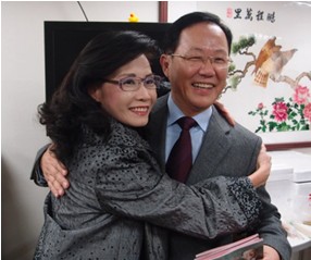 丁守中與秦慧珠擁抱并互道祝福。